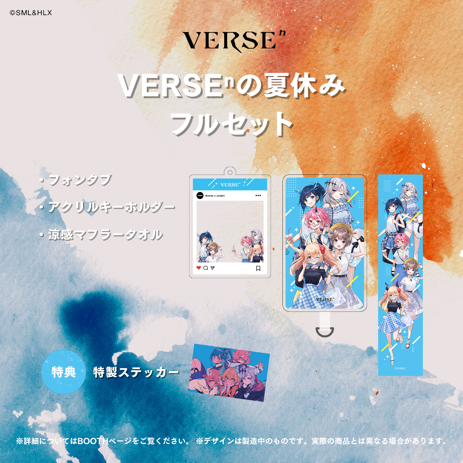 ※「VERSEⁿの夏休み フォンタブ」「VERSEⁿの夏休み アクリルキーホルダー」「VERSEⁿの夏休み 涼感マフラータオル」がセットになった商品となります。
