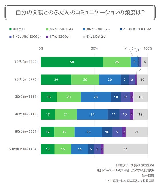 続いて、自分の父親とのふだんの会話/連絡頻度*について答えてもらいました。
