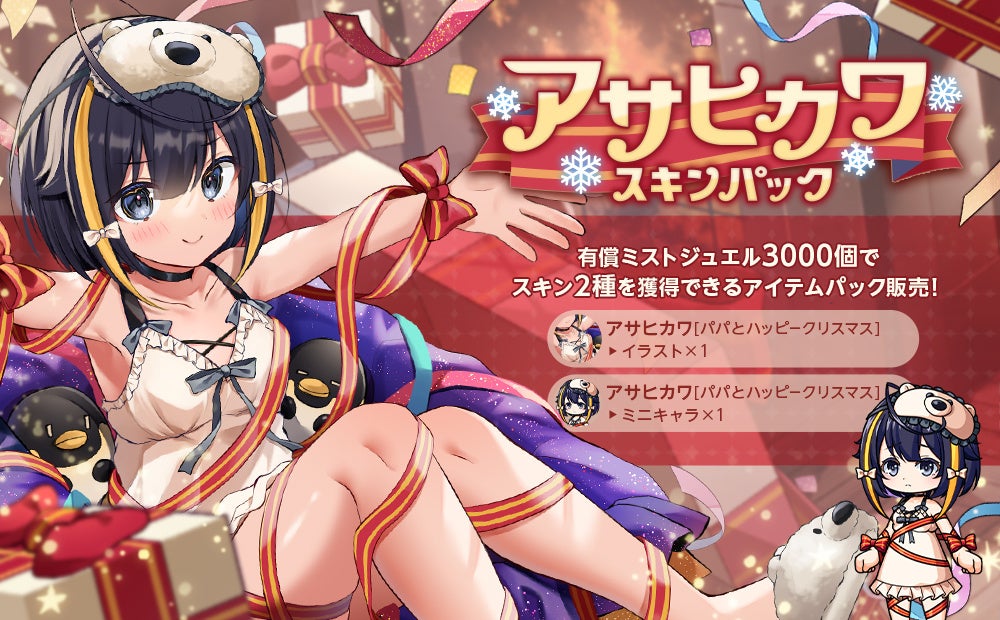 "アサヒカワ"の立ち絵と、ミニキャラの衣装変更ができる特別なスキンパックを販売いたします。