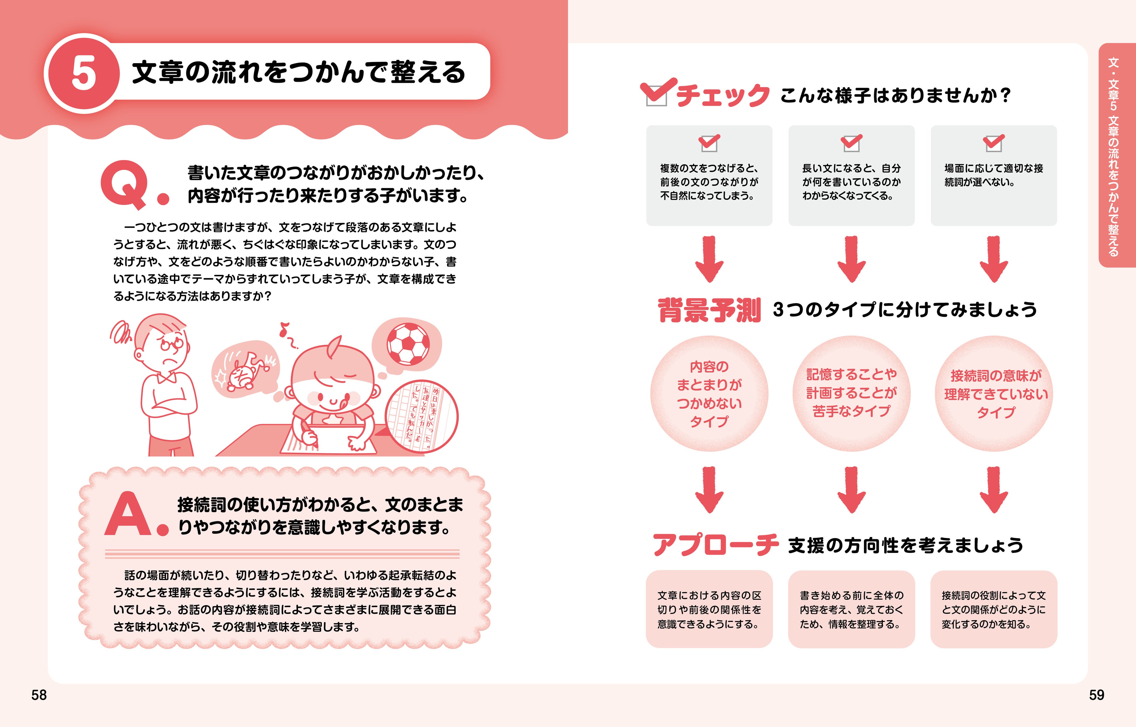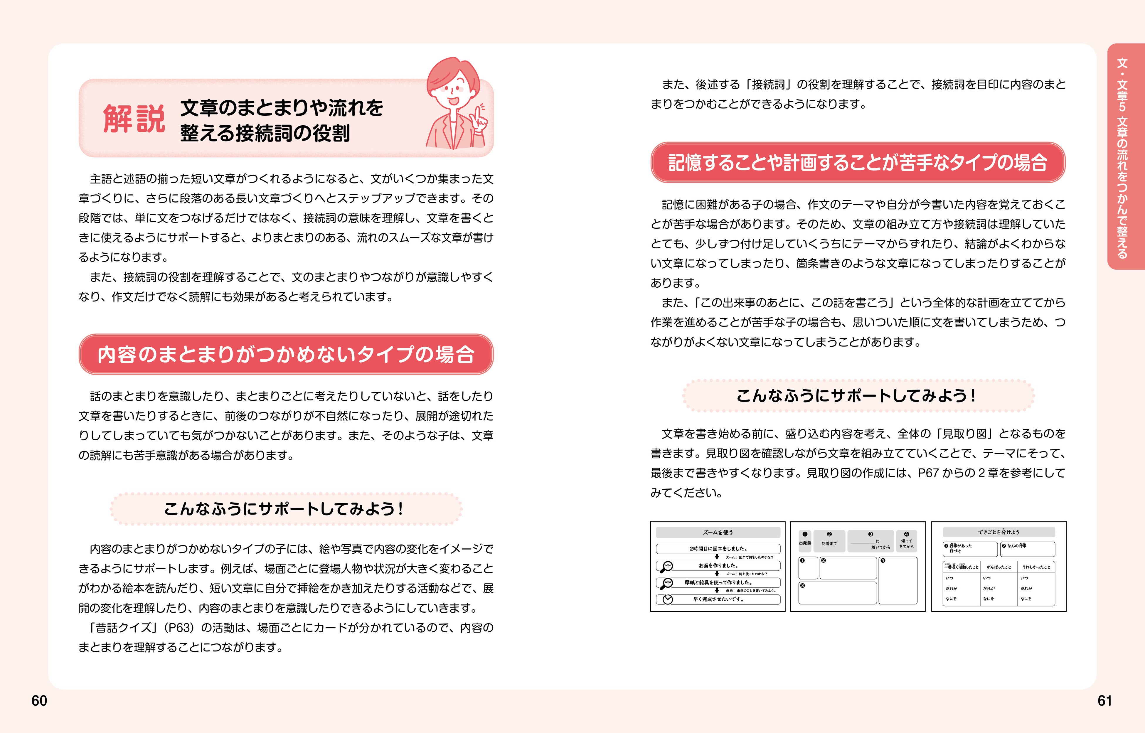 「作文に何をどのくらい書けばよいのかわからない」「話や文にまとまりがなく、つながりが悪い」