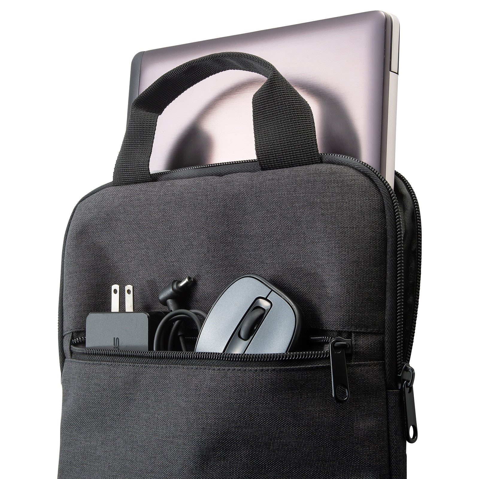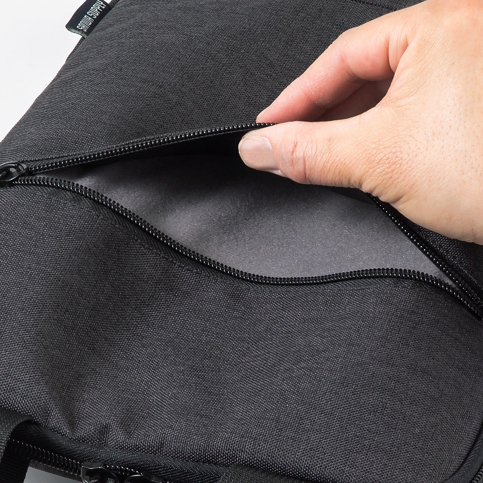 フロントポケットにはマウスやACアダプタなどを収納できます。機器と小物とで収納する場所を分けられるので、接触による機器の傷つきや故障などを防げます。
