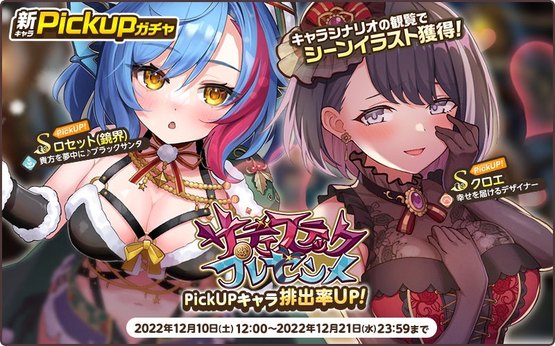 さらにSロセット(鏡界)【貴方を夢中に♪ブラックサンタ】とSクロエ【幸せを届けるデザイナー】は、キャラシナリオを閲覧するとホーム画面に設定できるシーンイラストが入手できます!