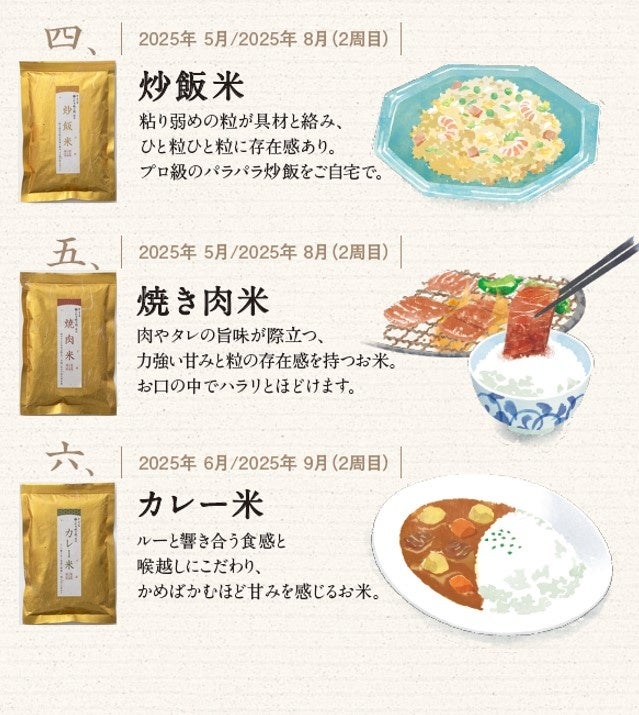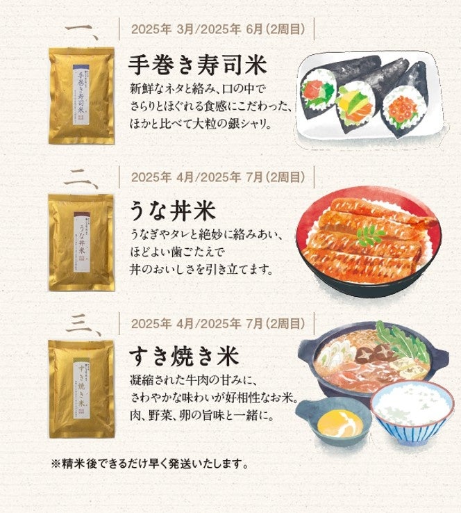 手巻き寿司米、うな丼米、すき焼き米、炒飯米、焼き肉米、カレー米の専用米6選