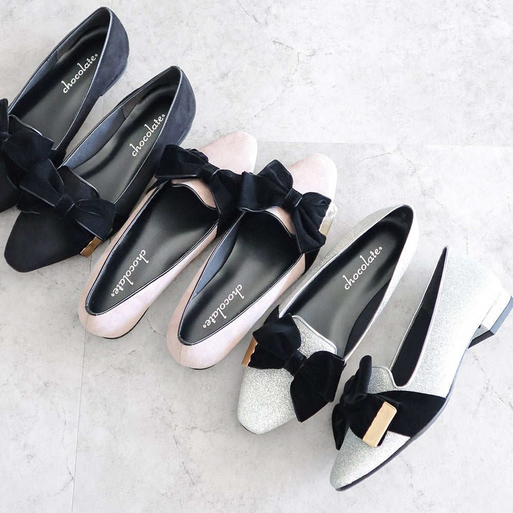 ベルベットのふんわりリボンが豪華な印象を与えるパンプス。そのリボンの先にはゴールドのプレートがあしらわれ、リッチで洗練された雰囲気を演出します。柔らかで上質な素材を使用し、驚くほどの軽さと快適な足あたりにこだわりました。特別な日にも、日常のオシャレにもぴったりな一足で、毎日をもっと楽しく。