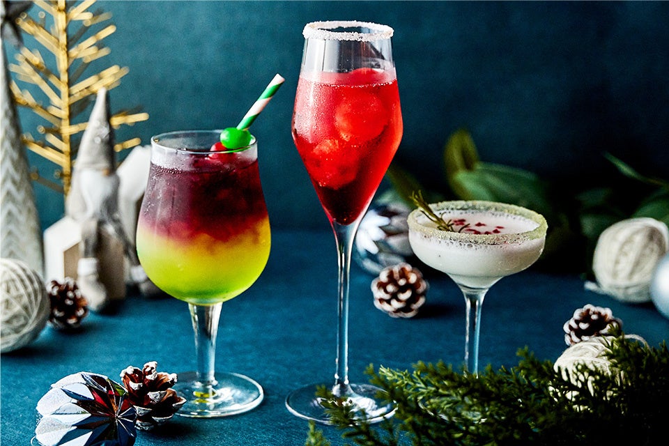 ●カジュアルモダンなバー空間で楽しむ、グリーンやレッド、ホワイトのホリデーシーズンカラーを取り入れたクリスマス期間限定カクテル
