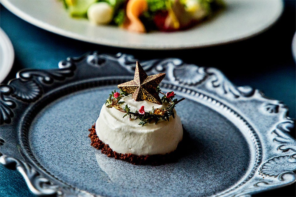 時間を選ばずランチでもディナーでもカジュアルにクリスマス気分が味わえるコースとしてご用意。カリフラワーのクリーミーなムースをはじめ、色鮮やかなビーツのピュレと肉の旨みを引き立たせるシンプルなジュドヴィアンドソースを添えた牛ヒレ肉のグリルやクリスマスの象徴とも言える星型チョコレートをあしらったベリーの酸味とマッチしたティラミスまで最後まで楽しめる全5品のコースが楽しめます。