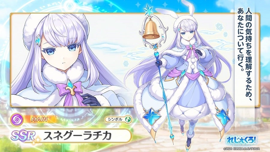 合同会社EXNOA(本社:東京都港区、CEO:村中 悠介、URL:https://games.dmm.com/)が運営するDMM GAMESにおいて、真の英雄となる王道ファンタジー『れじぇくろ!~レジェンド・クローバー~』(https://www.legend-clover.net/)は、新キャラ「スネグーラチカ」が登場したことを発表した。さらに「スネグーラチカ」の実装を記念した「スネグーラチカ実装記念セット」も販売する。