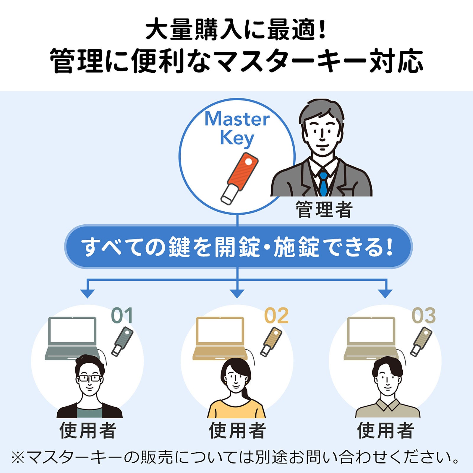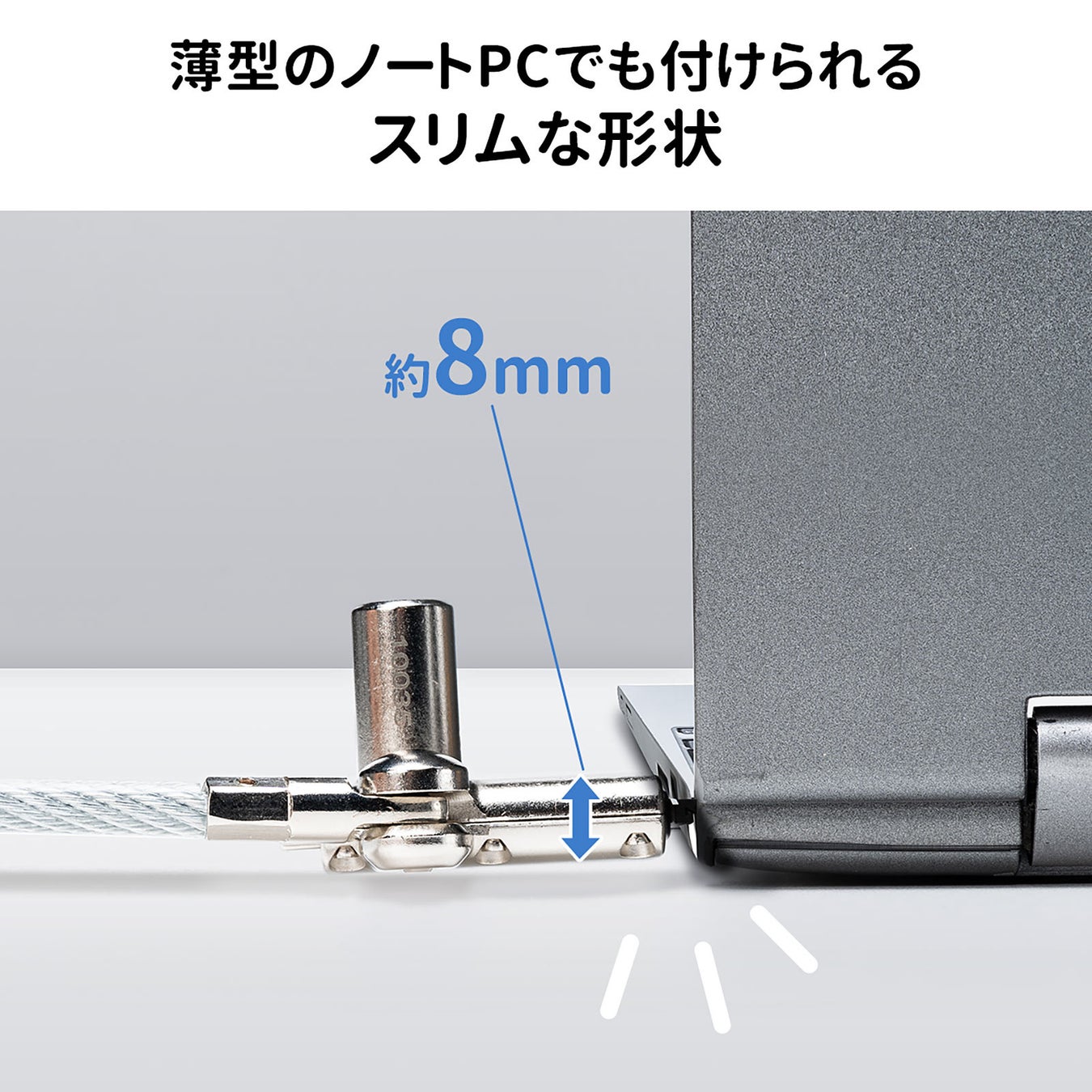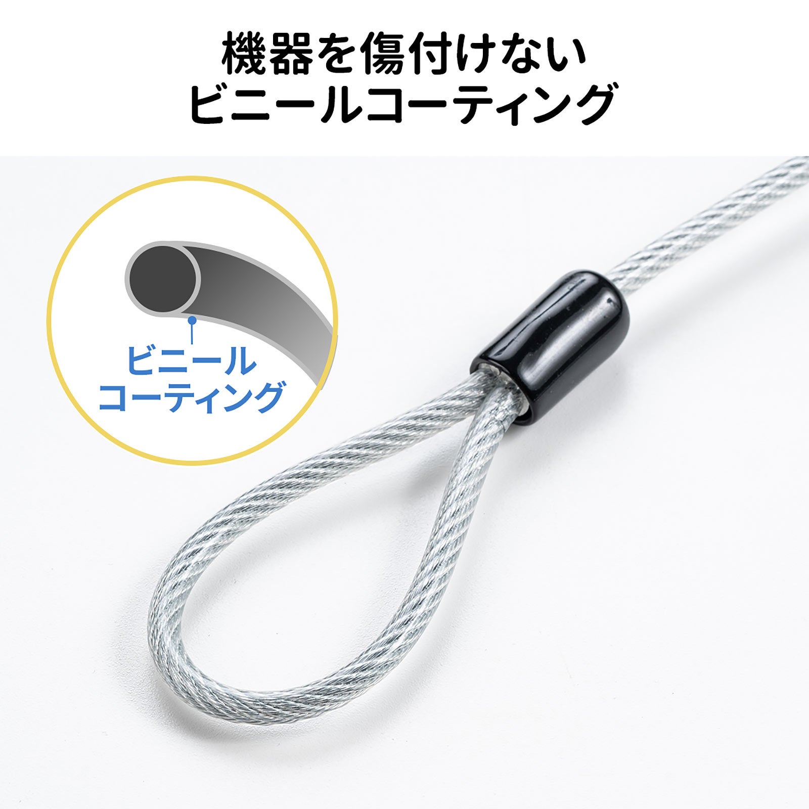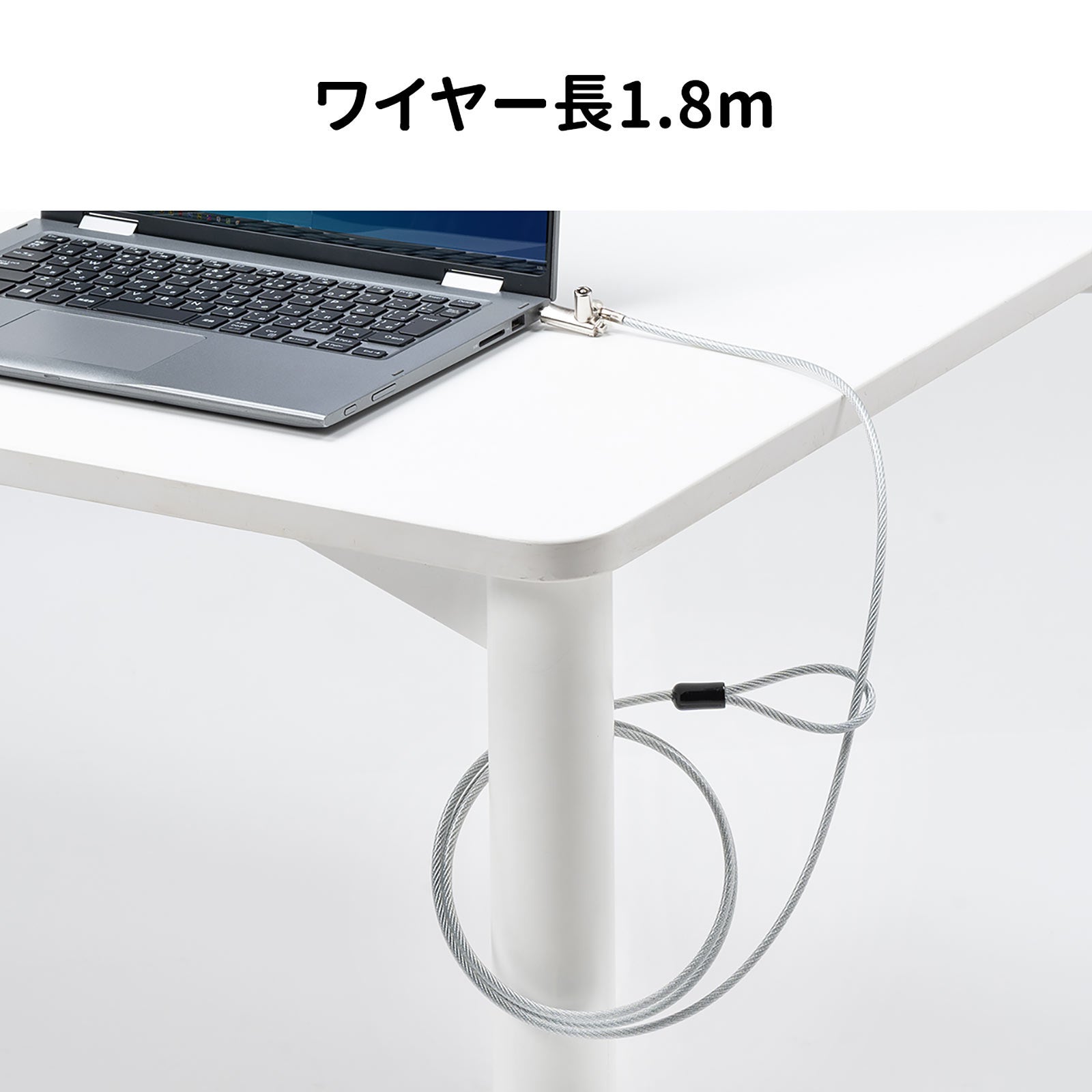 本製品は、主要なセキュリティスロット(ケンジントン・Nobleロック・NanoSaver)に対応したセキュリティワイヤーです。