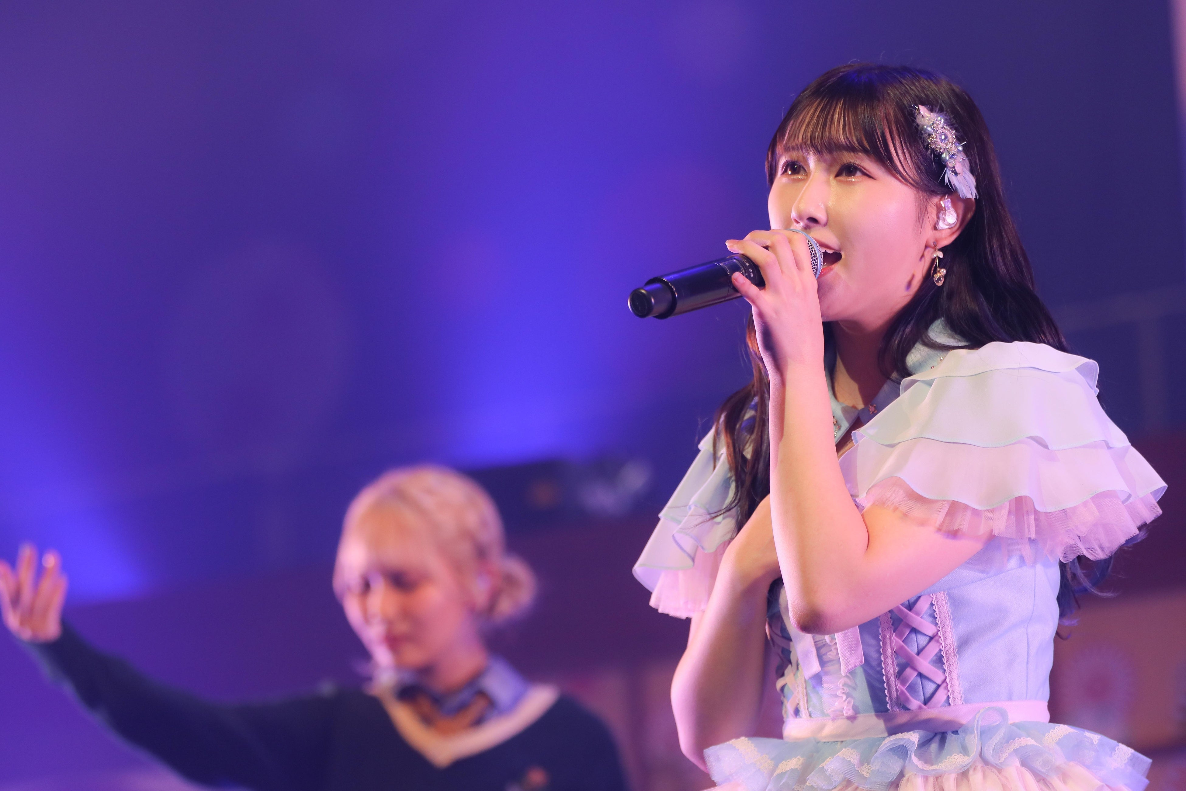 さらにダンストラックのビートに乗せた、ソロダンスを含む息の合ったダンスパフォーマンスを披露した後には、ビート感そのままにアクティブでパワフルな女性をテーマにしたダンスナンバー『Be Selfish』へと続く。さらに、メンバーが他己紹介をしあうイコラブ初の自己紹介ソング『ヒロインズ』での盛り上がりをそのままに、会場を埋め尽くすカラフルなペンライト、ステージ上のLEDに映し出された「炎」、赤色にライトアップされたステージ上で『Junkies』をパワフルに熱唱。一転、次曲では、諸橋沙夏のしっとりと歌い上げるアカペラからスタートした『記憶のどこかで』では、野口衣織とのダブルセンターで、歌詞を大切に噛みしめながら歌う姿が印象的だった。