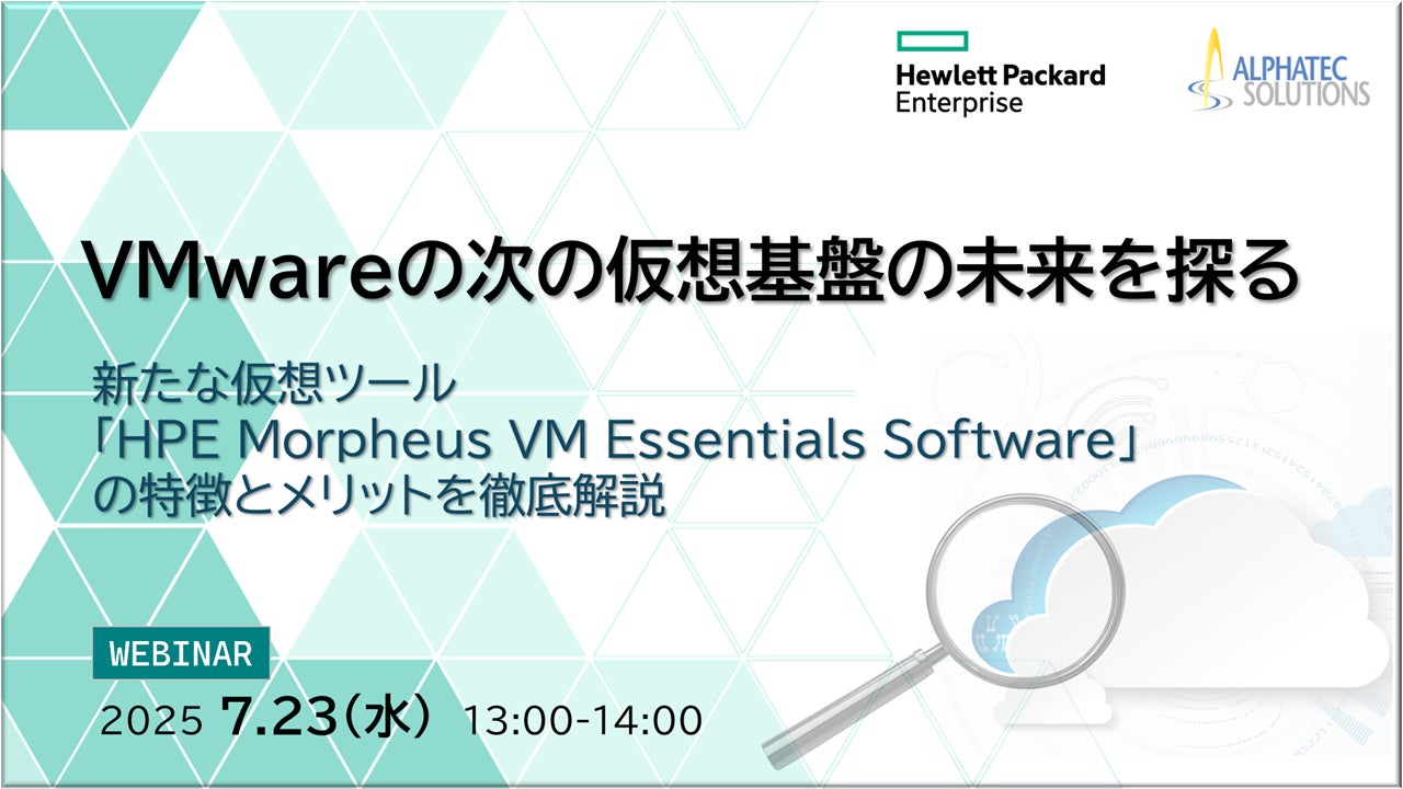 本セミナーでは仮想化基盤の代替環境として4つの選択肢を挙げ、その1つである「HPE Morpheus VM Essentials Software」を取り上げて、2025年6月23日(月)~26日(木)に米国ラスベガスで開催された「HPE Discover Las Vegas 2025」で発表された最新のアップデート情報を交えつつ、その特徴とメリットを徹底的に解説します。