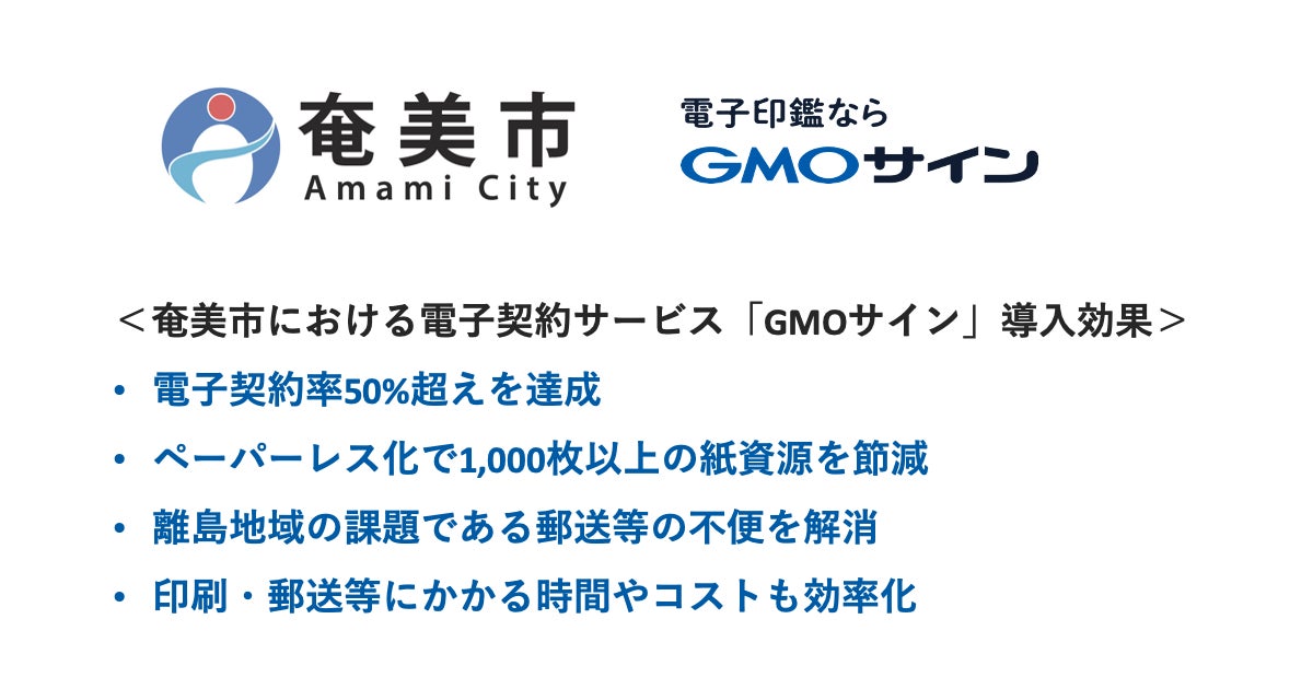 離島DXで鹿児島県奄美市が電子契約率50%超えを達成「電子印鑑GMOサイン」の導入で1,000枚以上のペーパーレス化や業務効率化を実現【GMOグローバルサイン・HD】