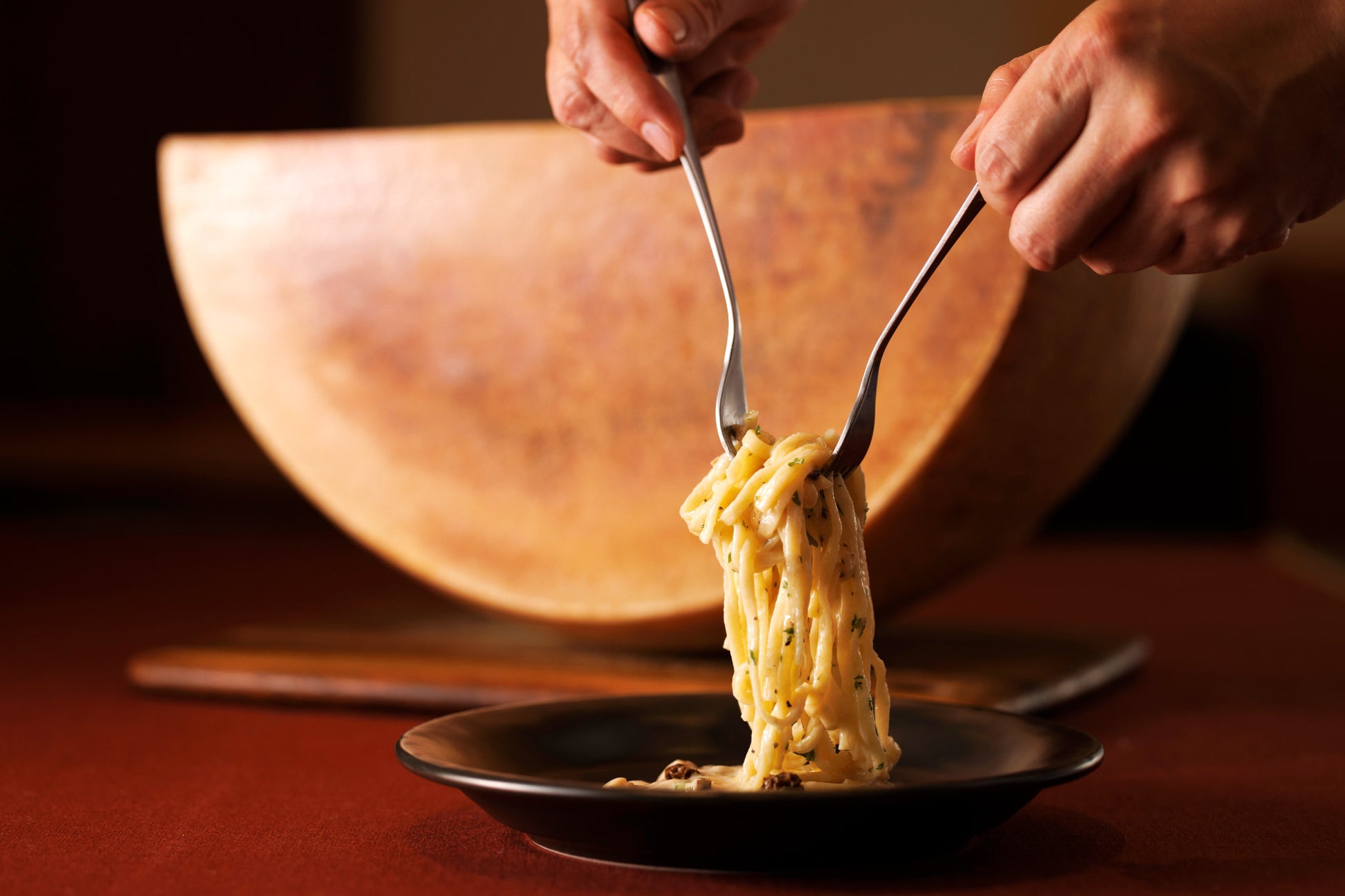 今回の目玉メニューは、シェフ・スタッフ・パティシエによる3種の実演メニューです。シェフの実演では、当レストランの看板メニュー「ローストビーフ」をトリュフソースでご提供。素材の旨味あふれるやわらかいお肉を、香り高いソースとともにお楽しみください。スタッフの実演では、大きなホールチーズを使ったチーズパスタ「リングイネ」をご用意。選べる2種のソースと濃厚なチーズが絡み合う、もちもち食感のパスタが食欲をそそります。パティシエの実演では、ふわふわのスフレロールをクリームとトッピングで仕上げる「スフレロールのブッシュドノエル」をご提供。目の前で完成していくスイーツの華やかさを、ぜひお楽しみください。