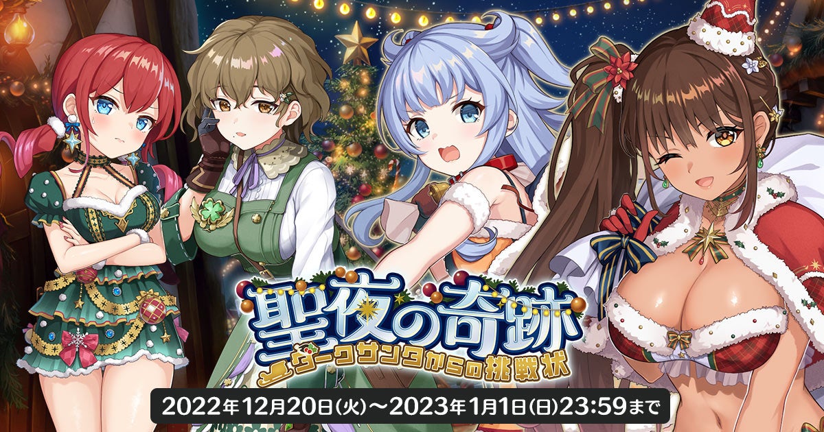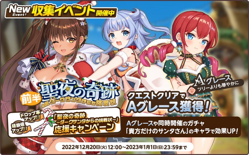 開催中のイベント「聖夜の奇跡~ダークサンタからの挑戦状~」で編成すると、アイテムドロップ率と獲得経験値がUPします!