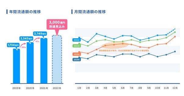 この約3,000億円の流通額と11,000件以上の導入店舗データをもとに、コロナ禍以前の2019年からコロナ禍3年目を迎えた2022年の振り返りを発表いたします。