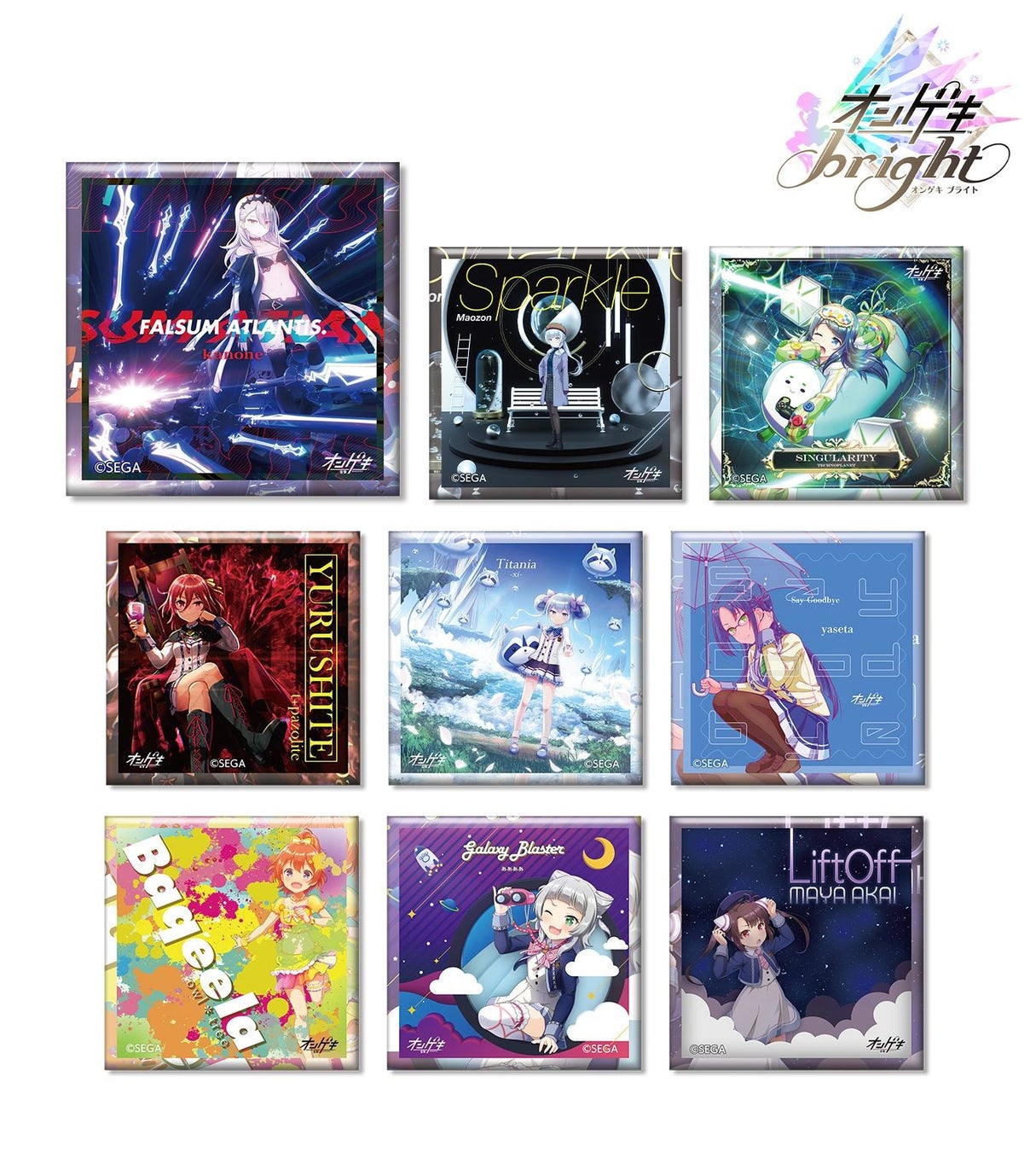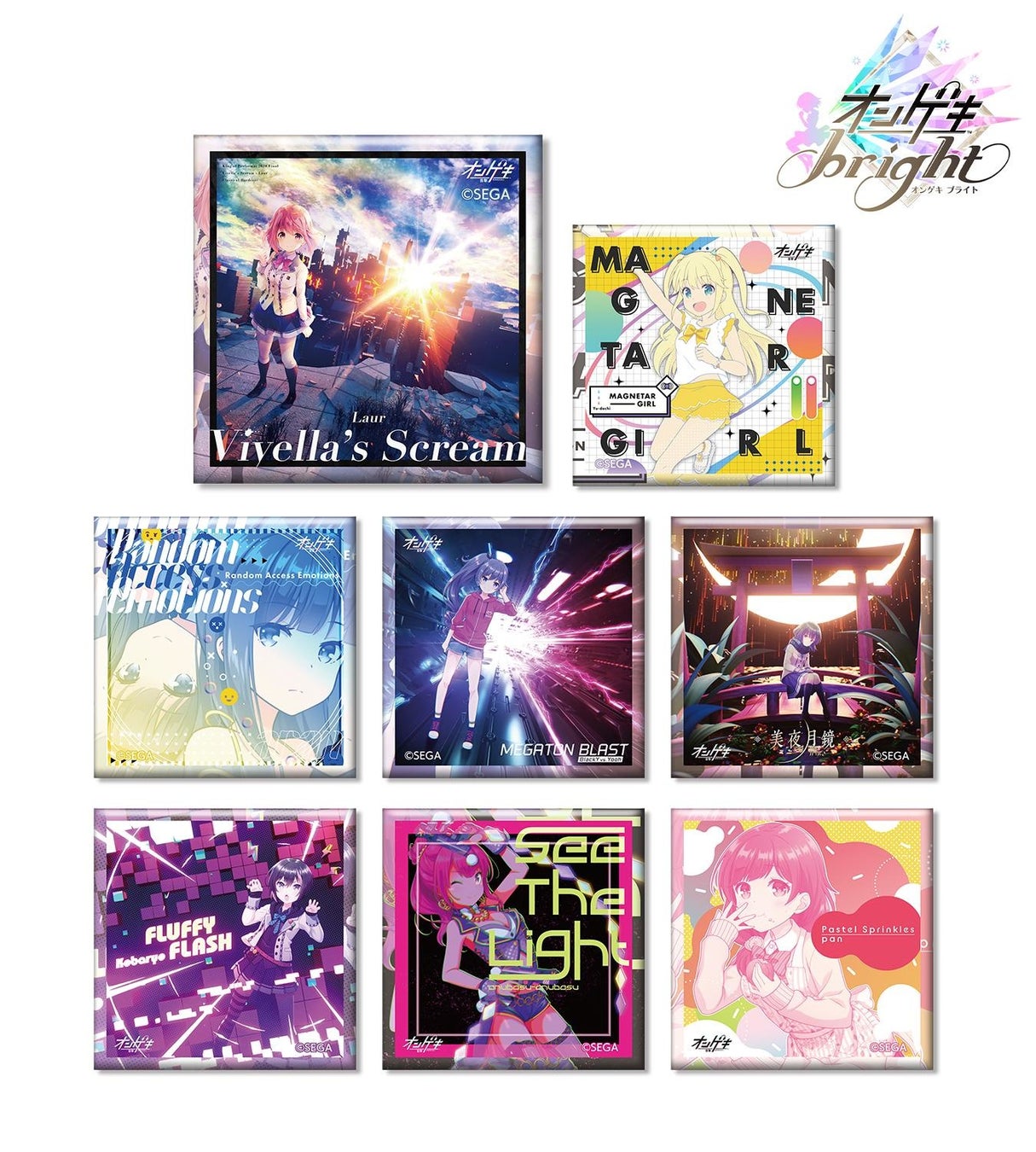 『オンゲキ』のトレーディング オンゲキ スクエア缶バッジ ver.A、ver.B、オンゲキ bright 筐体アクリルスタンドの受注開始!アニメ・漫画のオリジナルグッズを販売する「AMNIBUS」にて