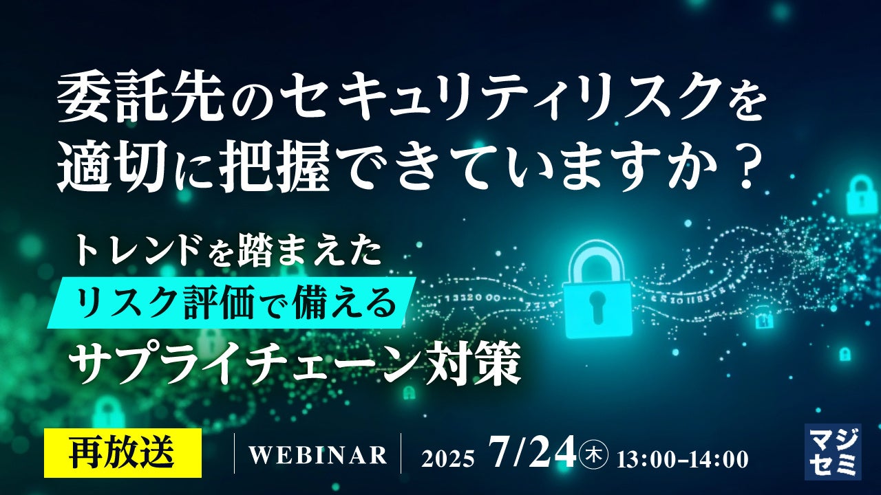 マジセミ株式会社は「【再放送】委託先のセキュリティリスクを適切に把握できていますか?」というテーマのウェビナーを開催します。