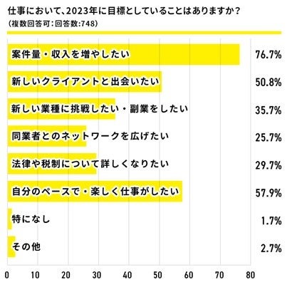「案件量・収入を増やしたい」という回答が最多となるものの、「自分のペースで・楽しく仕事がしたい」という、フリーランスらしい自由な働き方を期待する回答も数を伸ばしました。