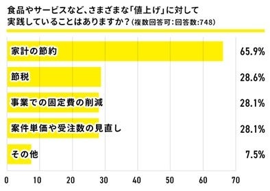 原材料費やエネルギー価格の高騰の影響で、さまざまな業界での値上げが相次いでいます。フリーランスが値上げラッシュに対して実践していることを聞くと、「家計の節約」と回答した人が約7割で最多となりました。