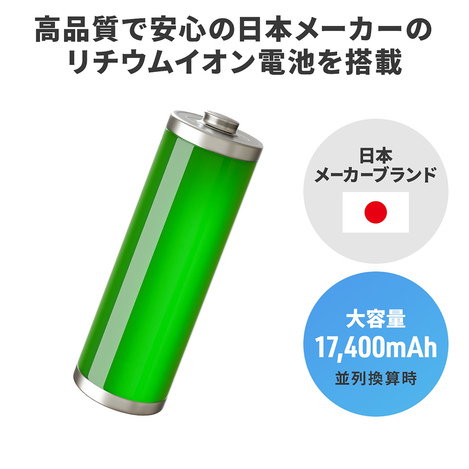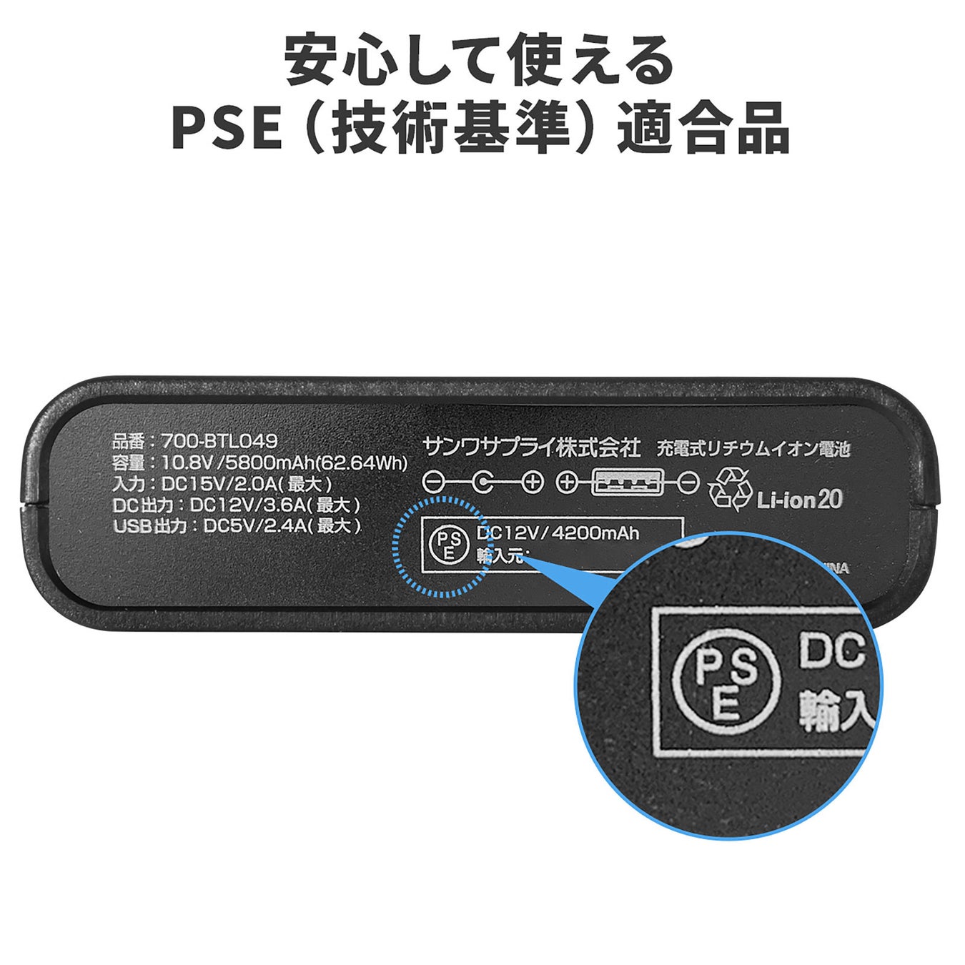 DC12V機器用モバイルバッテリー 大容量17400mAh 62.64Wh 飛行機内持ち込み可 日本メーカー製リチウムイオン電池 PSE適合品