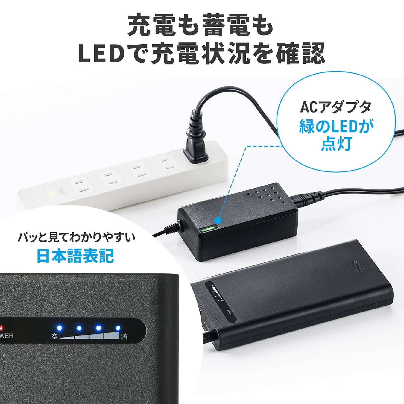 ※バッテリーから機器へ充電する場合、バッテリーの特性や機器の状況により、記載の容量よりも充電量は少なくなります。