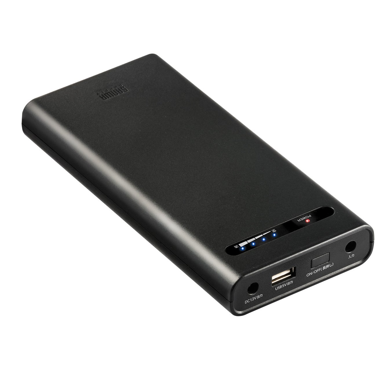 本製品は、大容量17400mAh(3.7V換算)のリチウムイオン電池を採用したDC12V機器用のモバイルバッテリー電源です。