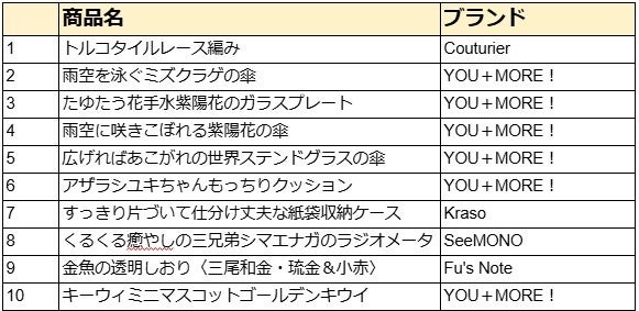 ◆YOU+MORE!グローバルサイト人気商品TOP10