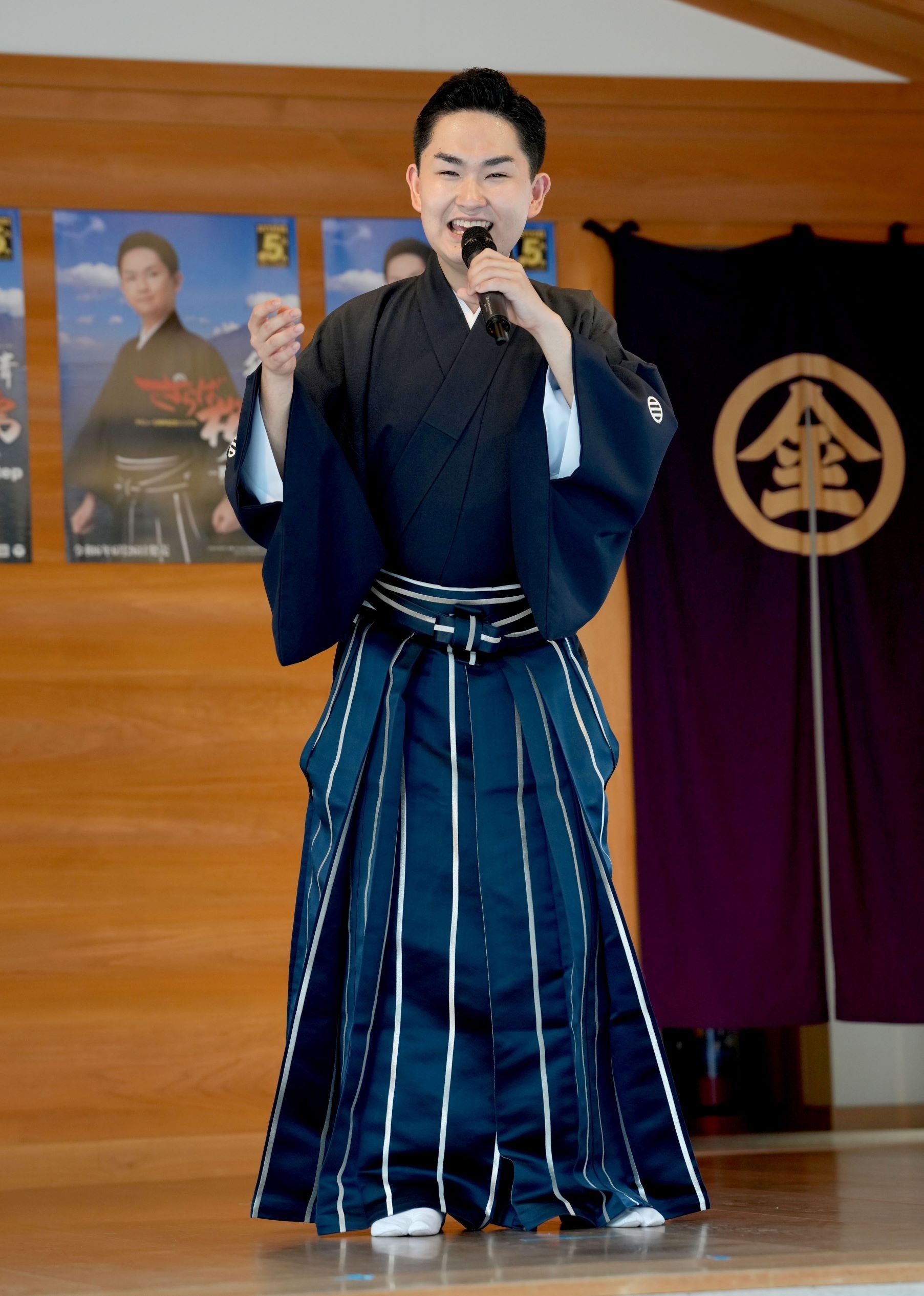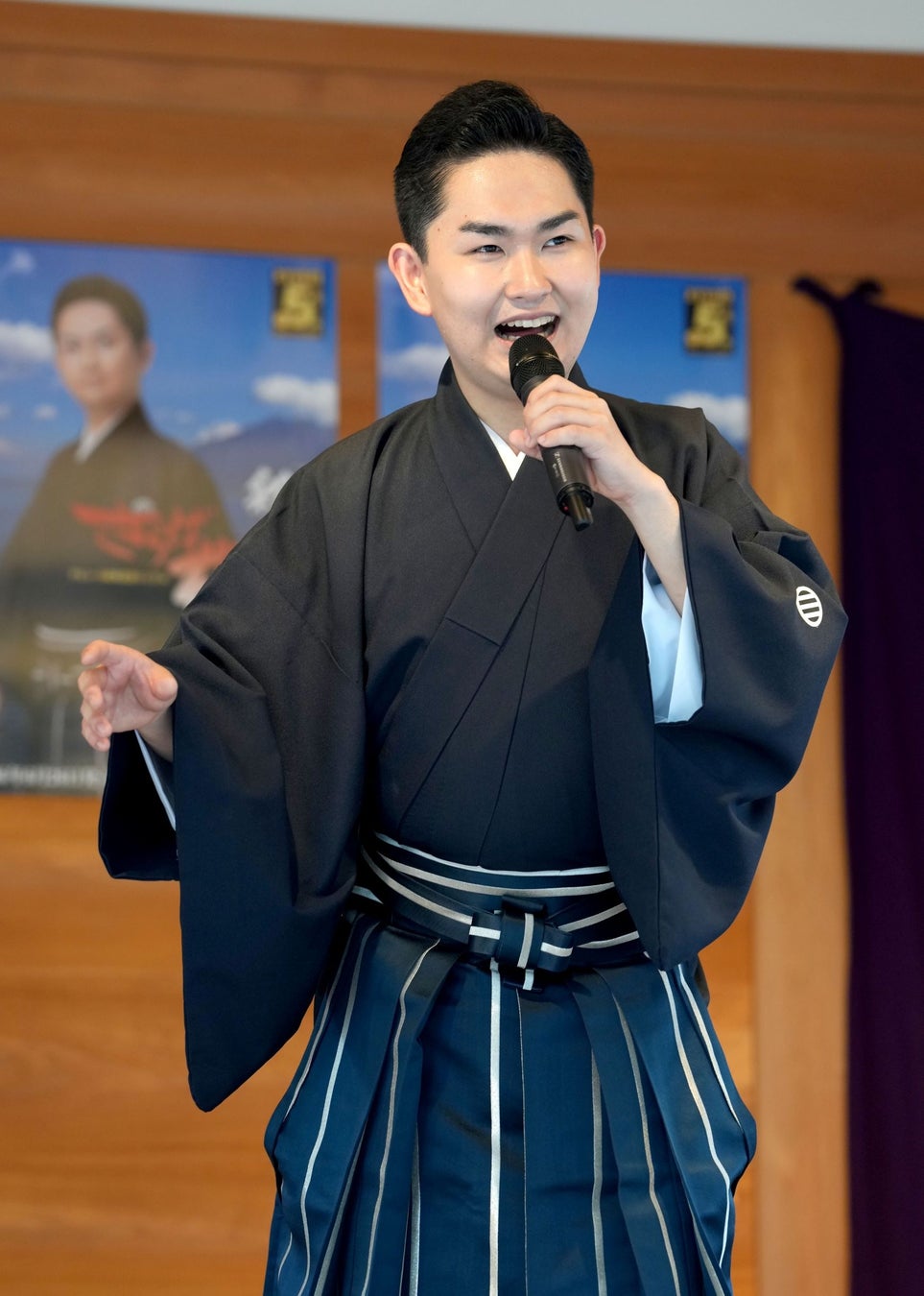 6年目の勝負曲「さらば桜島」については「いままでは北の歌が多かったのですが、九州を舞台にした歌はこれが初めてです。私も故郷・北海道岩見沢市を離れて精進させていただいているわけですが、この歌の主人公も故郷・鹿児島県の桜島を離れて、偉大な西郷(隆盛)さんのように大志を抱いて頑張るんだという夢に向かっていく男をテーマにした1曲になっています。この曲で、(二刀流の)大谷翔平選手の活躍のようにいろんなところで笑顔と元気をお届けできるような歌手になりたい」と意欲を燃やしていた。