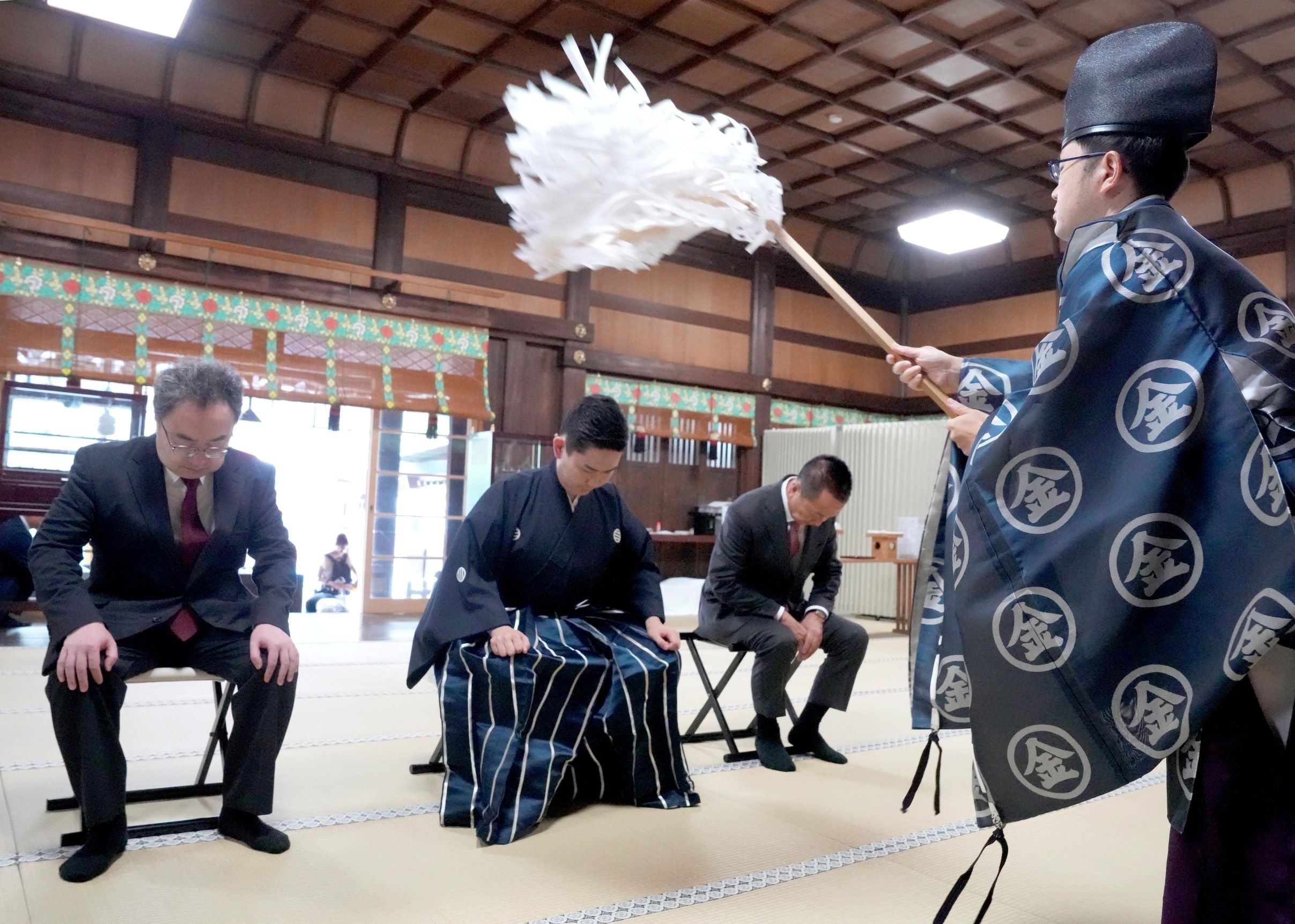 演歌歌手・細川たかしの愛弟子で、歌、三味線、尺八をこなす〝三刀流歌手〟として人気上昇中の演歌歌手・彩青(りゅうせい、21)が、デビュー5周年記念シングル「さらば桜島」(詩・石原信一、曲・弦哲也)を日本コロムビアから自身のデビュー記念日でもある6月26日に発売したのを記念して同日、東京・虎ノ門の金刀比羅宮でヒット祈願&歌唱奉納を行った。