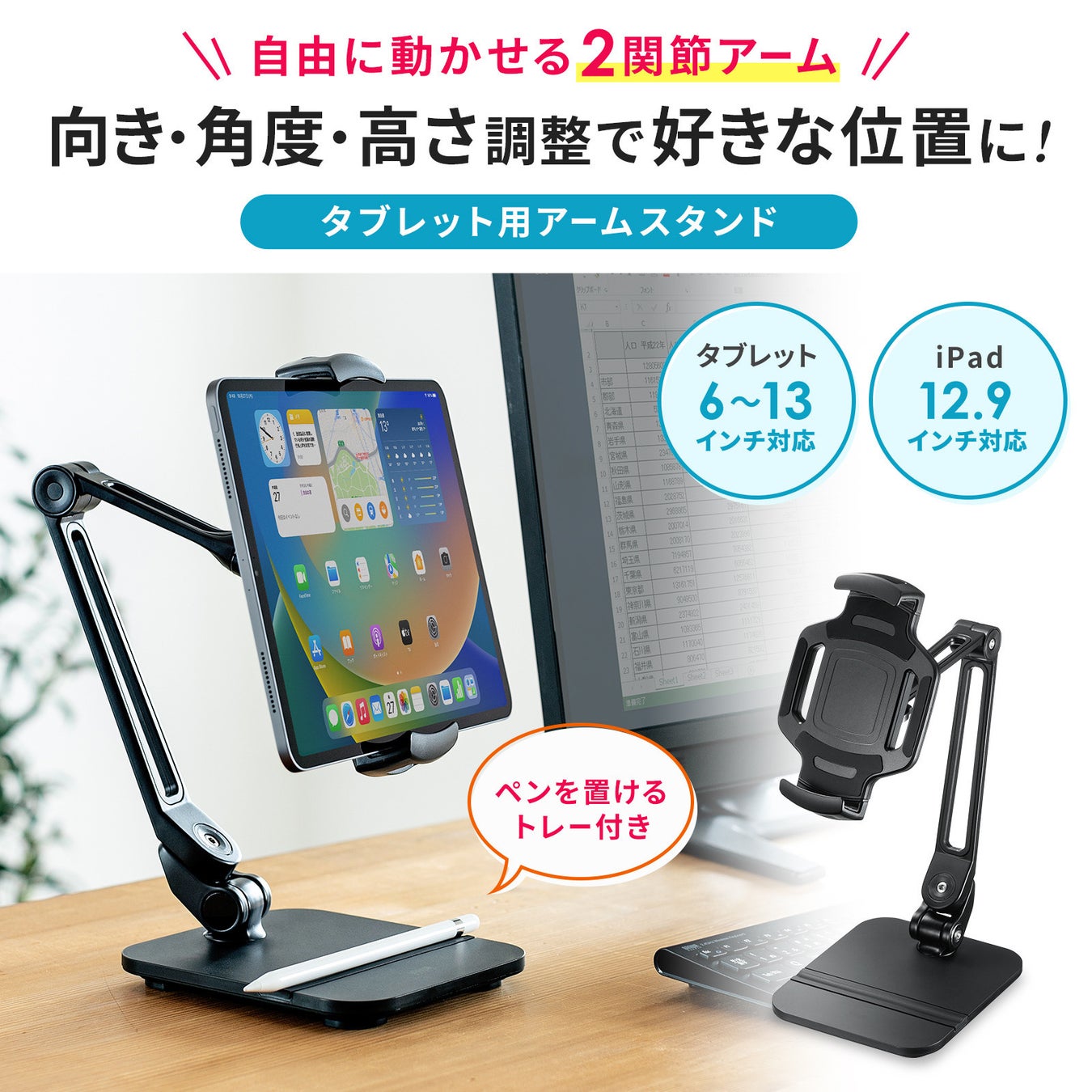 2関節アームで向き・角度・高さを好きな位置に調節できる、ペントレー付きタブレット用アームスタンドを発売
