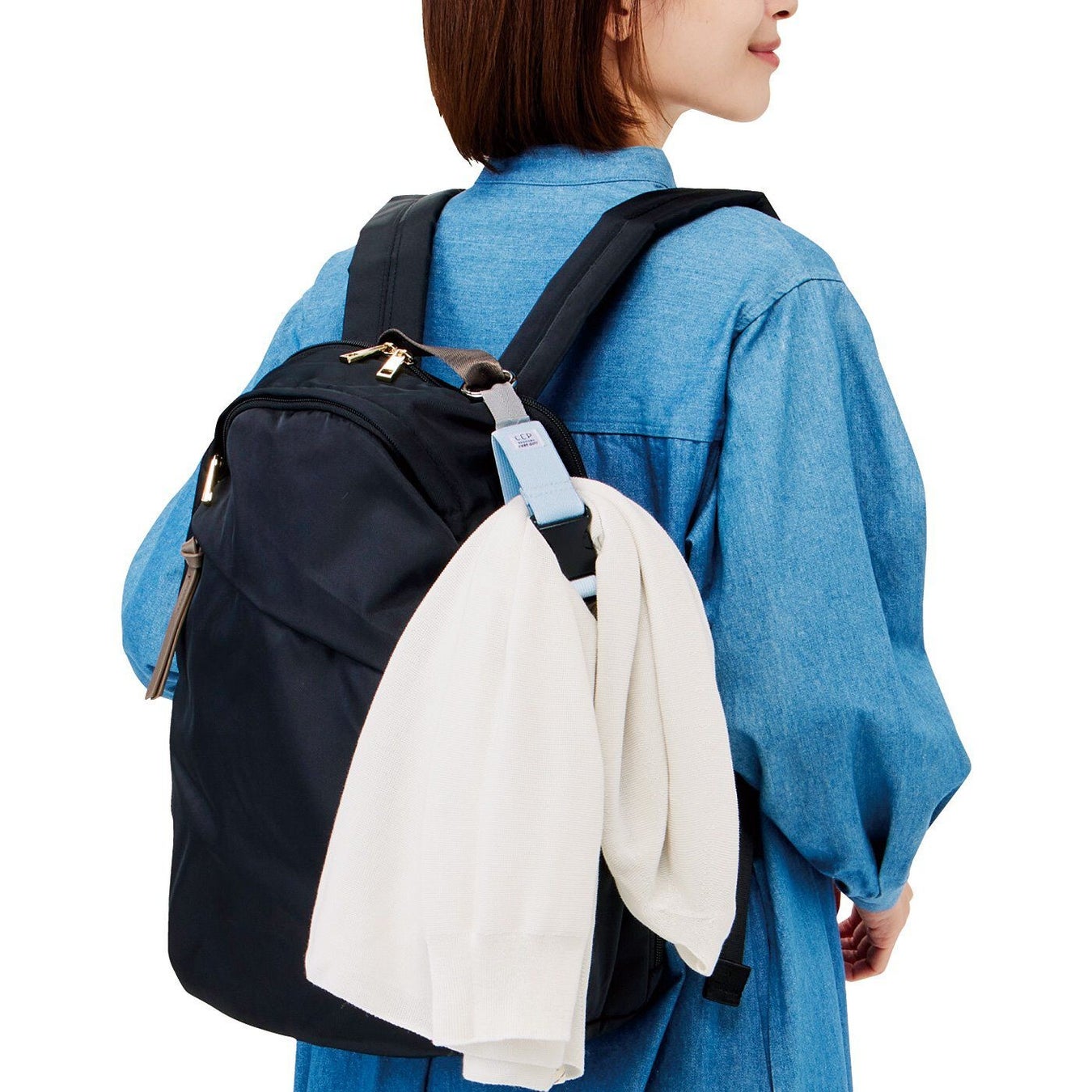 外出先で脱いだアウターや手袋、マフラーなどの小物をハンズフリーで持ち運べるゴムホルダーです。トートバッグの持ち手やリュックのつりひもなど、いつものバッグに付けて荷物をひとまとめにできるので、うっかり置き忘れてしまうといったお悩みを解決してくれます。