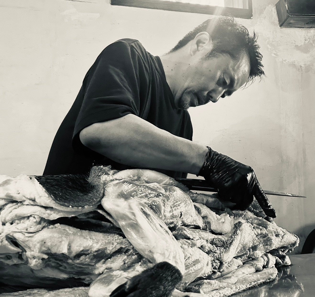 沖縄県南城市大里出身、県内の大学卒業後、ヤンバルを拠点にするネイチャーガイドの下で約2年間スタッフを務める。その後関西に渡り約10年間複数の飲食店で勤務。沖縄に戻り地元の南城市大里で自分らの手でコンテナから店舗を作り、独立開業。特別なものは使わず近所のスーパー、ファーマーズでなるべく地元の食材を仕入れ、時間をかけて仕込み、決まったメニューはなくお任せ料理のみ。気取らず美味い料理と美味いお酒と時間を忘れていつまでも、村のはずれの小さな飯屋『ま』。