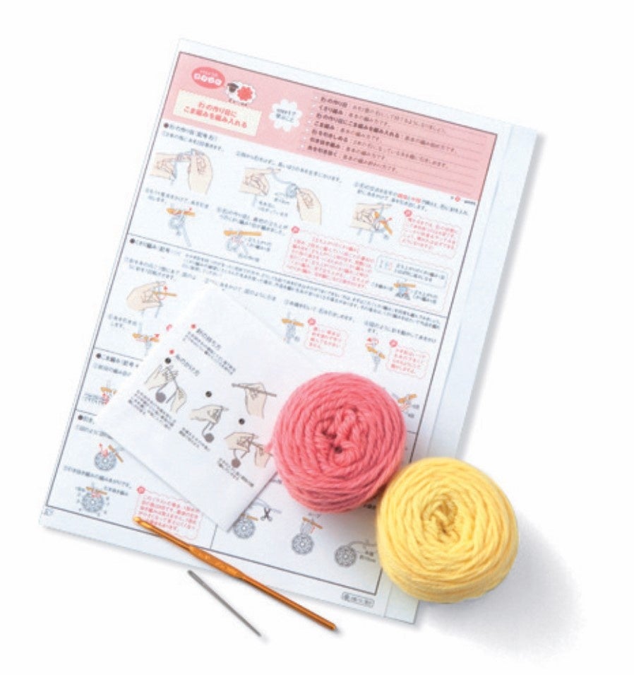 「針の持ち方も分からない」という方も大丈夫な、持ち方からレクチャーするかぎ針編みのレッスンキット。レッスンしながらトレンドのかぎ針編みモチーフをマスターすることができ、一般的な編み図も読めるようになります。
