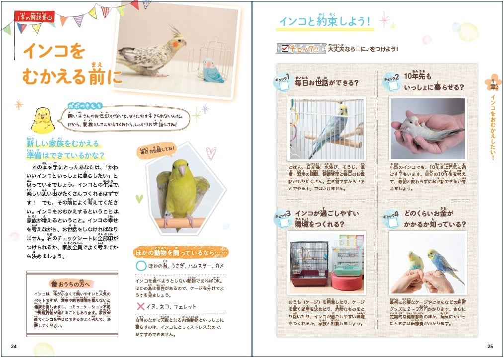 「インコを飼ってみたいなぁ…」と思っている人はもちろん、実際にインコを飼っている人にも役立つ内容になっています。