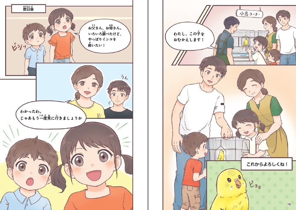 「インコと仲よくなりたい!」そんな気持ちにこたえます! まんがでお世話のキホンがよくわかるはじめての飼い方マニュアル『インコがおうちにやってきた!』発売!