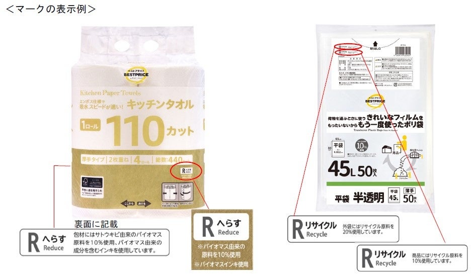 また、具体的にどのような対応をしている商品であるかをお客さまにお知らせするメッセージや、トップバリュが独自に設ける「環境配慮3Rマーク」をパッケージに表示して展開いたします。