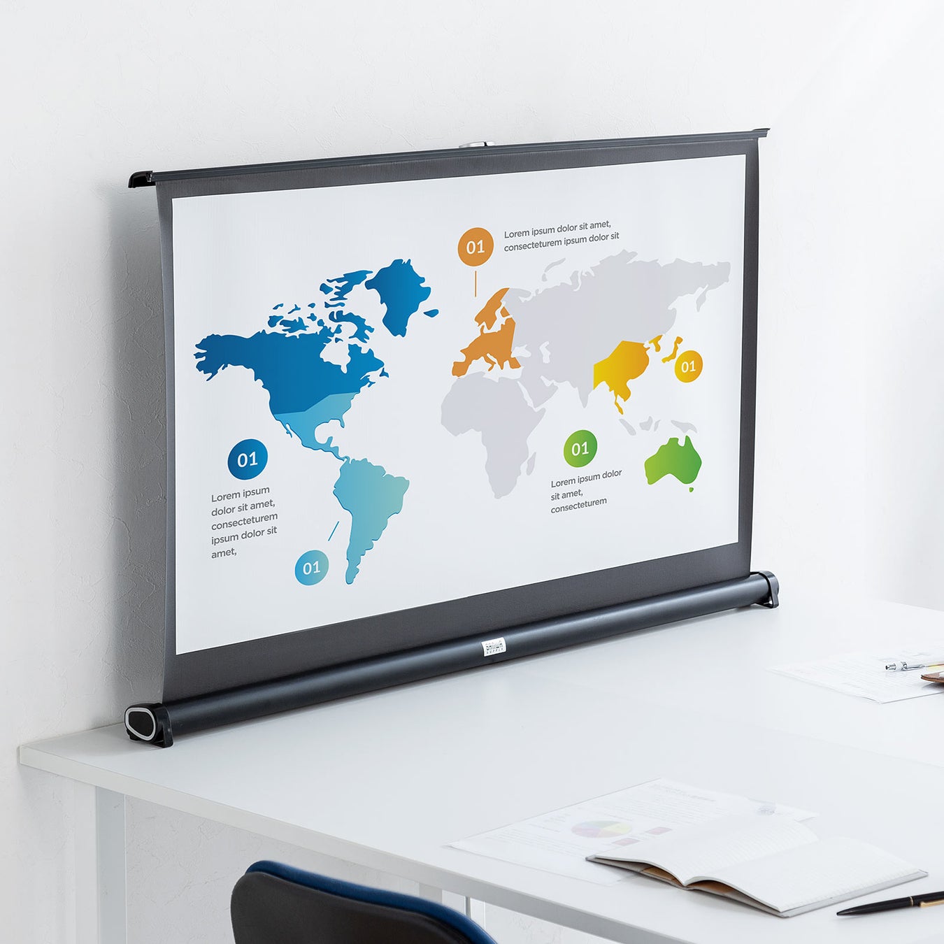 本製品は、簡単に引き出して使用できる、卓上用のプロジェクタースクリーンです。