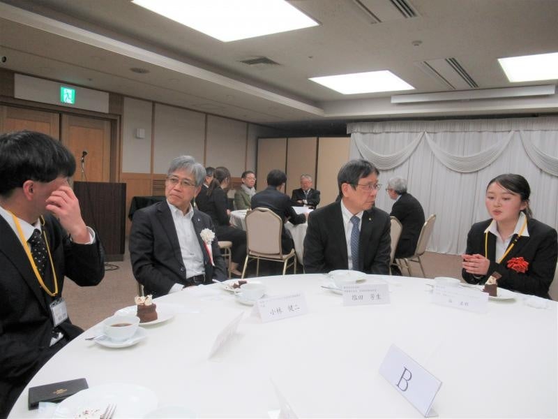 会の後半には、派遣学生と協賛企業、大学教職員、行政関係者が一堂に会する交流会も開催され、本学の学生4人も参加。活発な意見交換が行われました。それぞれの留学経験が、地域と世界の未来を担う貴重な一歩となることが期待されます。