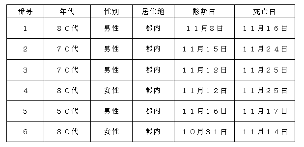 都内で新型コロナウイルスに感染した方が死亡されましたのでお知らせします。