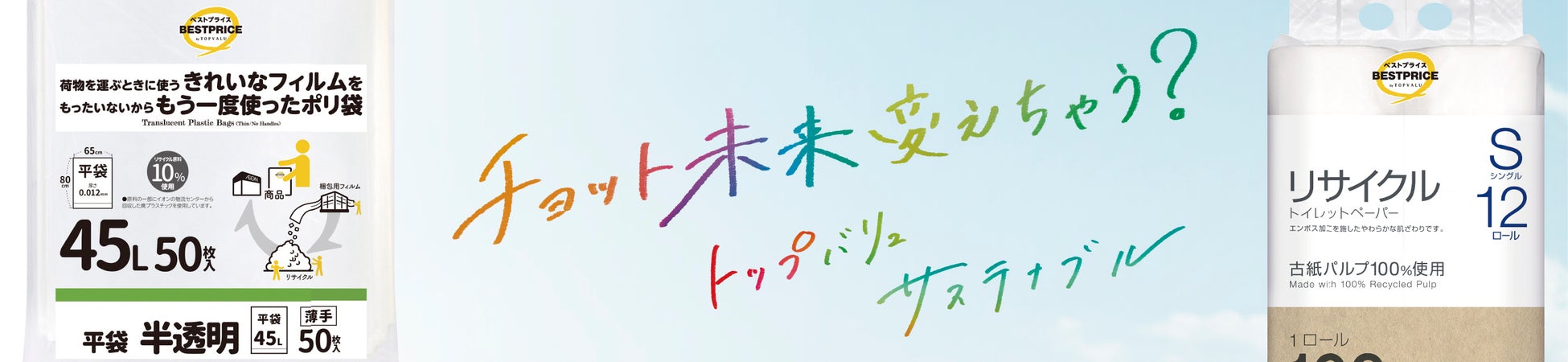 【資源循環型リサイクルの取り組みから誕生】「トップバリュベストプライス 荷物を運ぶときに使う きれいなフィルムを もったいないからもう一度使ったポリ袋」などを発売