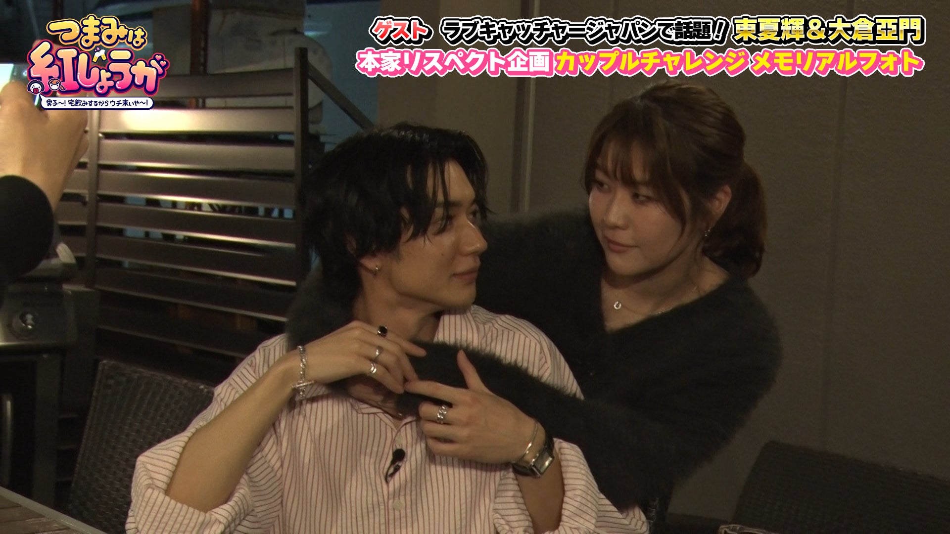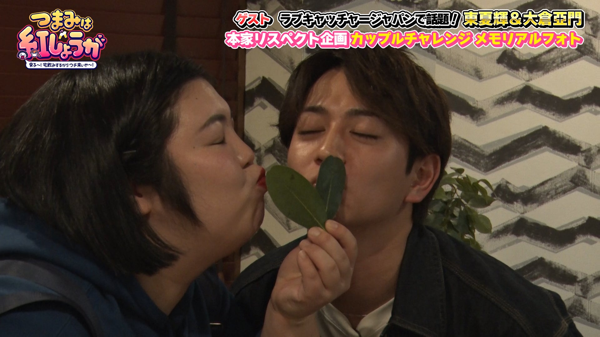 前回に引き続き『LOVE CATCHER Japan』に出演した東夏輝と大倉亞門がゲストとして登場し、今回は「カップルチャレンジ メモリアルフォト」に挑戦することに。これは、それぞれのカップルで撮影した写真をSNSにアップし、いいねなどのリアクション数で競うというもの。ゲストの2人が出演していた『LOVE CATCHER Japan』の番組内でやっていた人気の企画を、紅しょうがとともにやってみようという企画です。