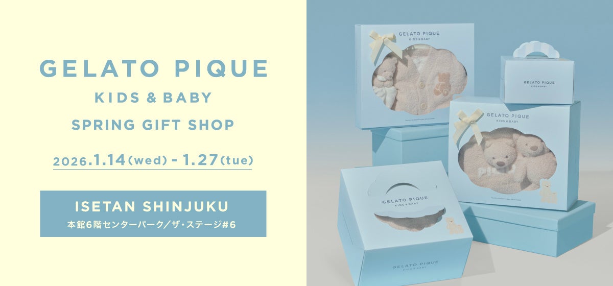 株式会社マッシュスタイルラボ(所在地:東京都千代田区/代表取締役社長:近藤広幸)が展開するルームウェアブランド 「gelato pique」のキッズ&ベビーライン「GELATO PIQUE KIDS & BABY(ジェラート ピケ キッズ&ベビー)」は、”大切なあの子へ、春を届けるギフト”をテーマにしたコンセプトストア“SPRING GIFT SHOP”を2026年1月14日(水)から1月27日(火)の期間、伊勢丹新宿店にオープンいたします。商品をお買い上げいただいたお客様には先着順でノベルティをプレゼント。1月16日(金)からは【ドラえもん meets GELATO PIQUE】コレクションのアイテムもご用意いたします。