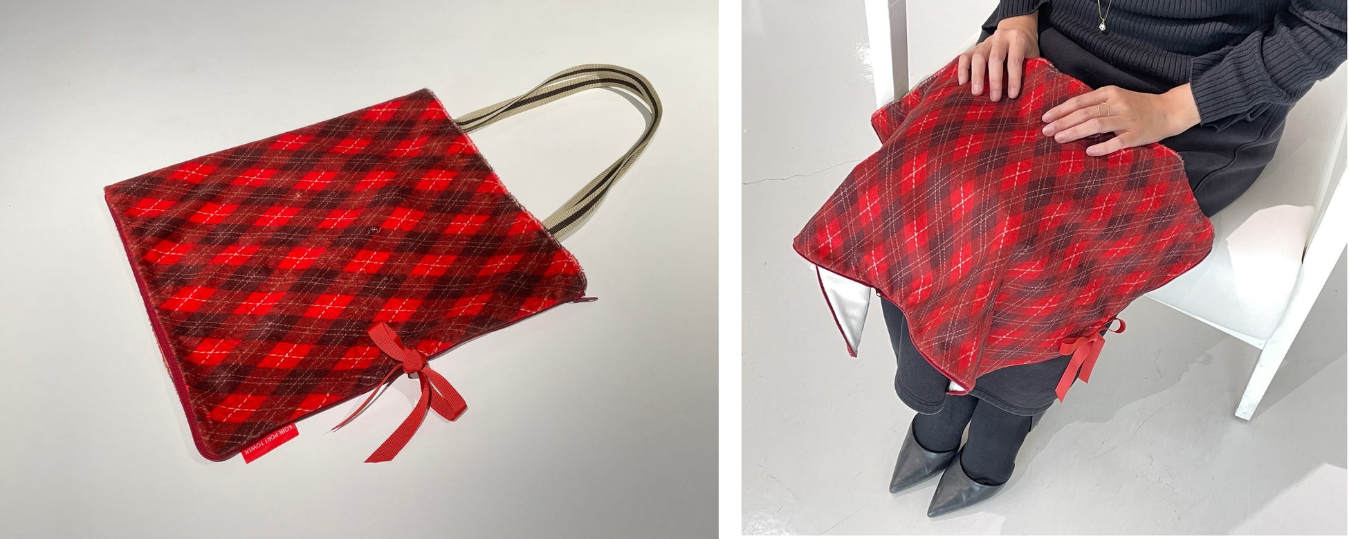 冬のお出かけに、バッグのファスナーを開くとブランケットになるトートバッグです。漫才コンビ・キングコングの西野亮廣氏監修の〈神戸ポートタワーチェック〉柄が印象的。表も内側も起毛素材を用いており、肌寒い季節のお出かけ先でサッと広げるとあたたかなブランケットに変身します。バッグとして、また丸めてポートタワーっぽく、お出かけをするのに持ち歩いて便利に使えます。お買い物の際には、ファスナーを閉めるとB4サイズが入るトートバッグとしても使えます。冬場のアウトドアイベントやスポーツ観戦に見た目もあたたかく便利です。