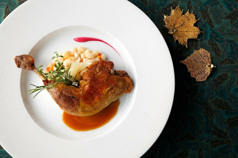 ライブキッチンでは、ローストビーフを一枚ずつ丁寧にカッティング。赤身の旨みを活かした絶妙な火入れで、クリスマスの高揚感を盛り上げます。さらに、お一人さま一皿限定でご提供する合鴨腿肉のコンフィは、低温調理でしっとりと仕上げた贅沢な味わい。しっかりとした肉の旨みに、心までほどけるような柔らかさを添えた、ごちそうの日にぴったりの一品です。