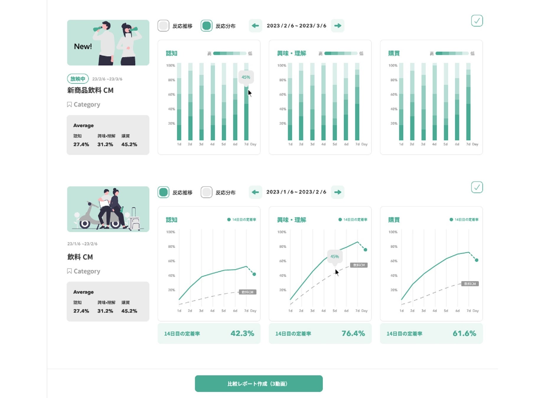 CM動画を放映前後で検証し、効果的なCM制作ノウハウの蓄積が可能に