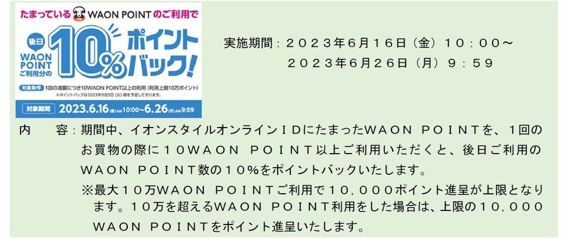 WAON POINTのご利用でご利用のポイント10%ポイントバック>