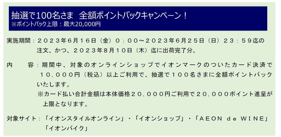 イオンマークのついたクレジット払い限定抽選で100名さまに全額ポイントバック