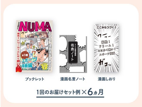 ブックレット『月刊漫画 NUMA』1冊と、漫画名言ノート、漫画しおりが届きます。