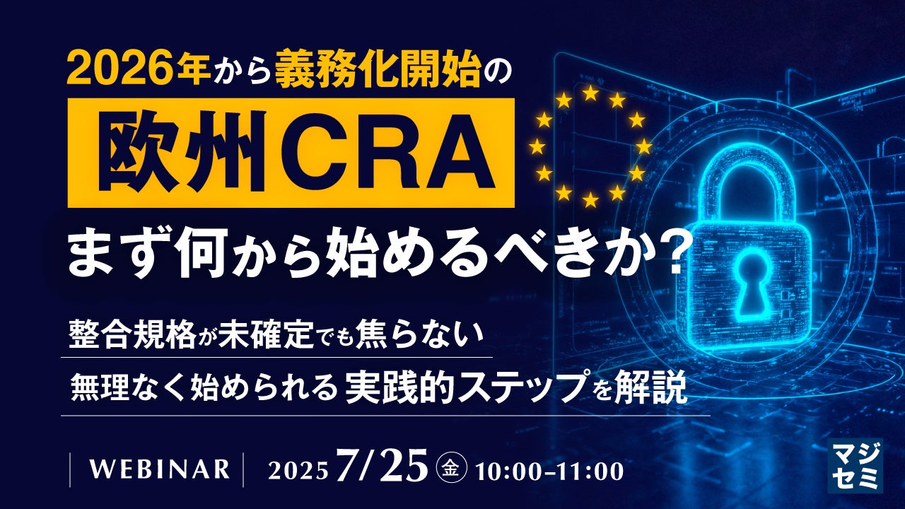 マジセミ株式会社は「2026年から義務化開始の「欧州CRA」、まず何から始めるべきか?」というテーマのウェビナーを開催します。