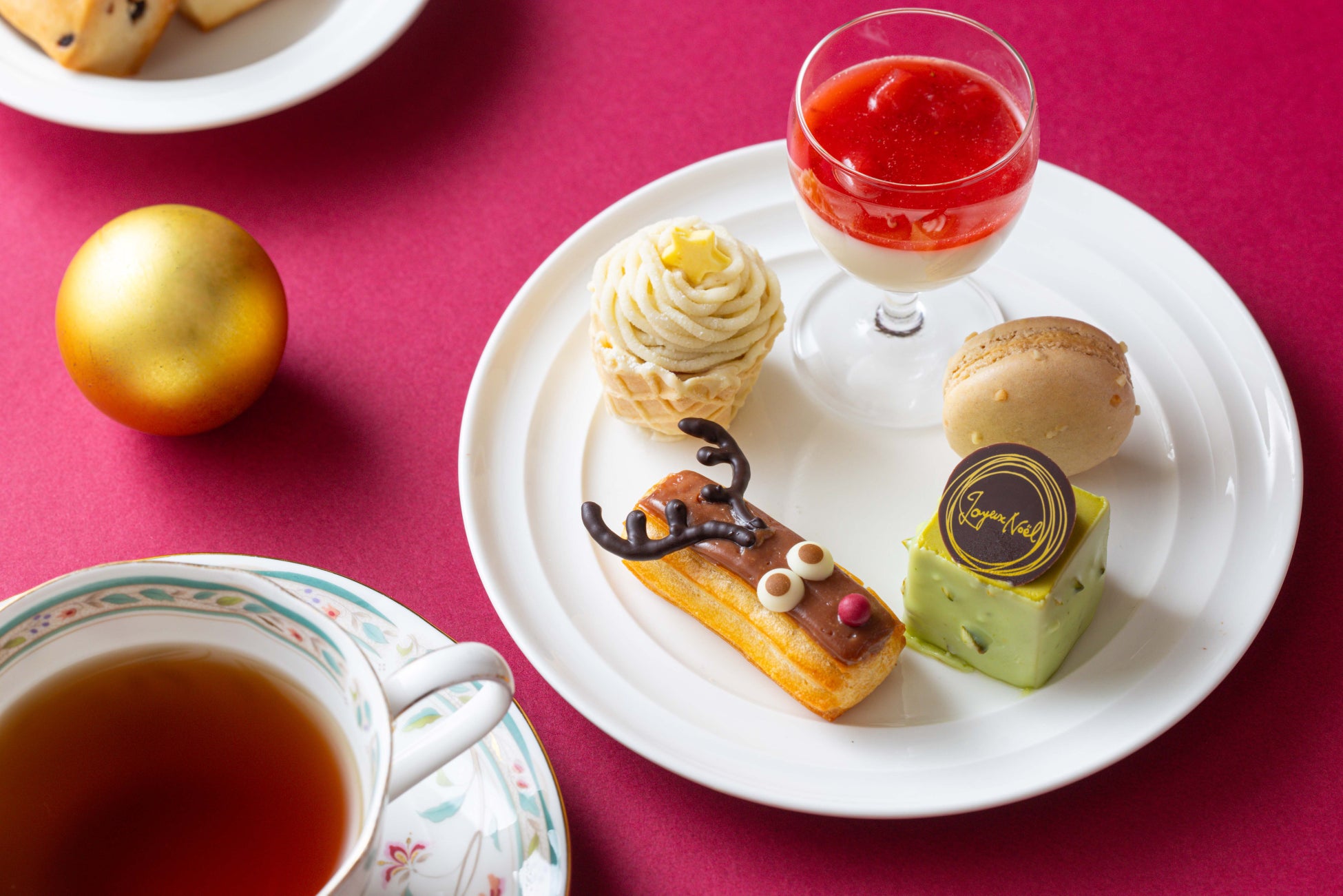 今回のアフタヌーンティーでは、クリスマスらしい遊び心を感じるスイーツや、冬にうれしい温かいセイボリーもご用意しました。思わず笑顔がこぼれる、香ばしいナッツ風味のクリームが入ったミニサイズのキュートな「トナカイエクレア」は、小さな角とつぶらな瞳が愛らしく、まるでテーブルの上にちょこんと現れたトナカイのよう。ほかにもツリーに見立てた「ホワイトチョコモンブラン」など見ても食べても楽しい、ホテルならではの“サプライズスイーツ”が揃います。セイボリーには、じっくりと煮込んだ牛肉がごろっと入った「アッシェパルマンティエ」を。