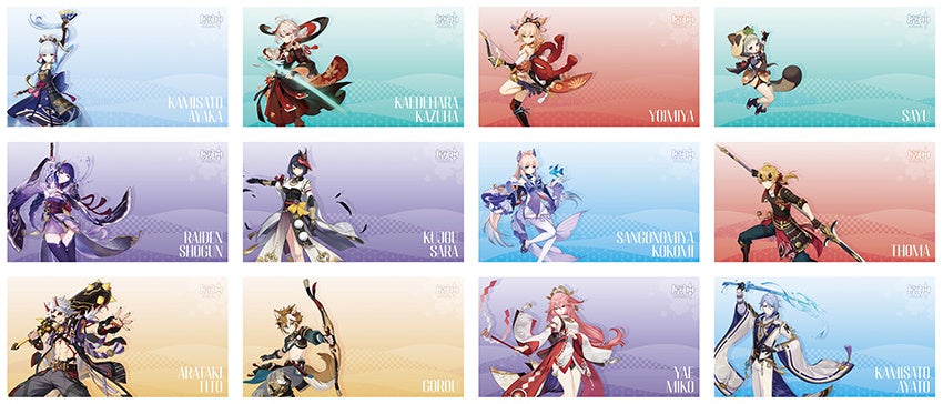 開催内容:期間中、『原神』関連のキャラクターグッズをご購入・ご予約内金1,100円(税込)毎に、特典「ポストカード(全12種)」を1枚プレゼントいたします。